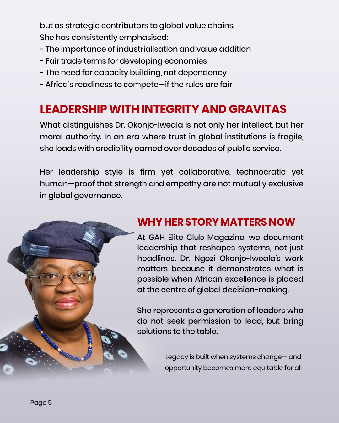 Dr. Ngozi Okonjo-Iweala exemplifies the leadership Africa must continue to project globally—rooted in expertise, guided by integrity, and committed to inclusive progress.