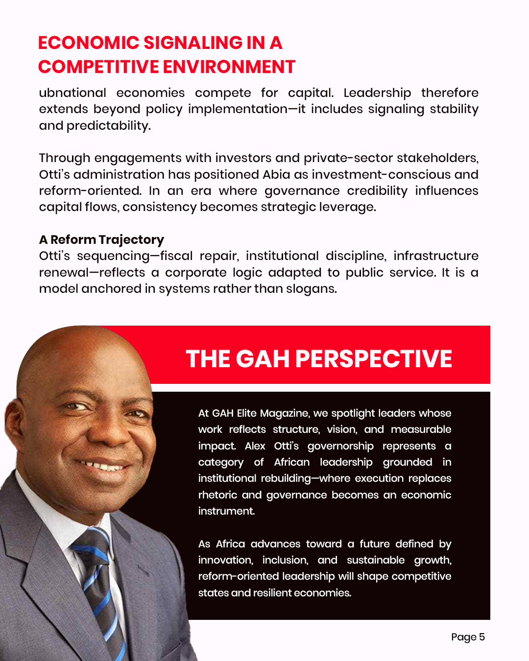 At GAH Elite Magazine, we spotlight leaders who treat governance as an instrument of economic transformation. Alex Otti’s trajectory reflects a reform-oriented model of African leadershipβ€”anchored in accountability, institutional strength, and measurable progress