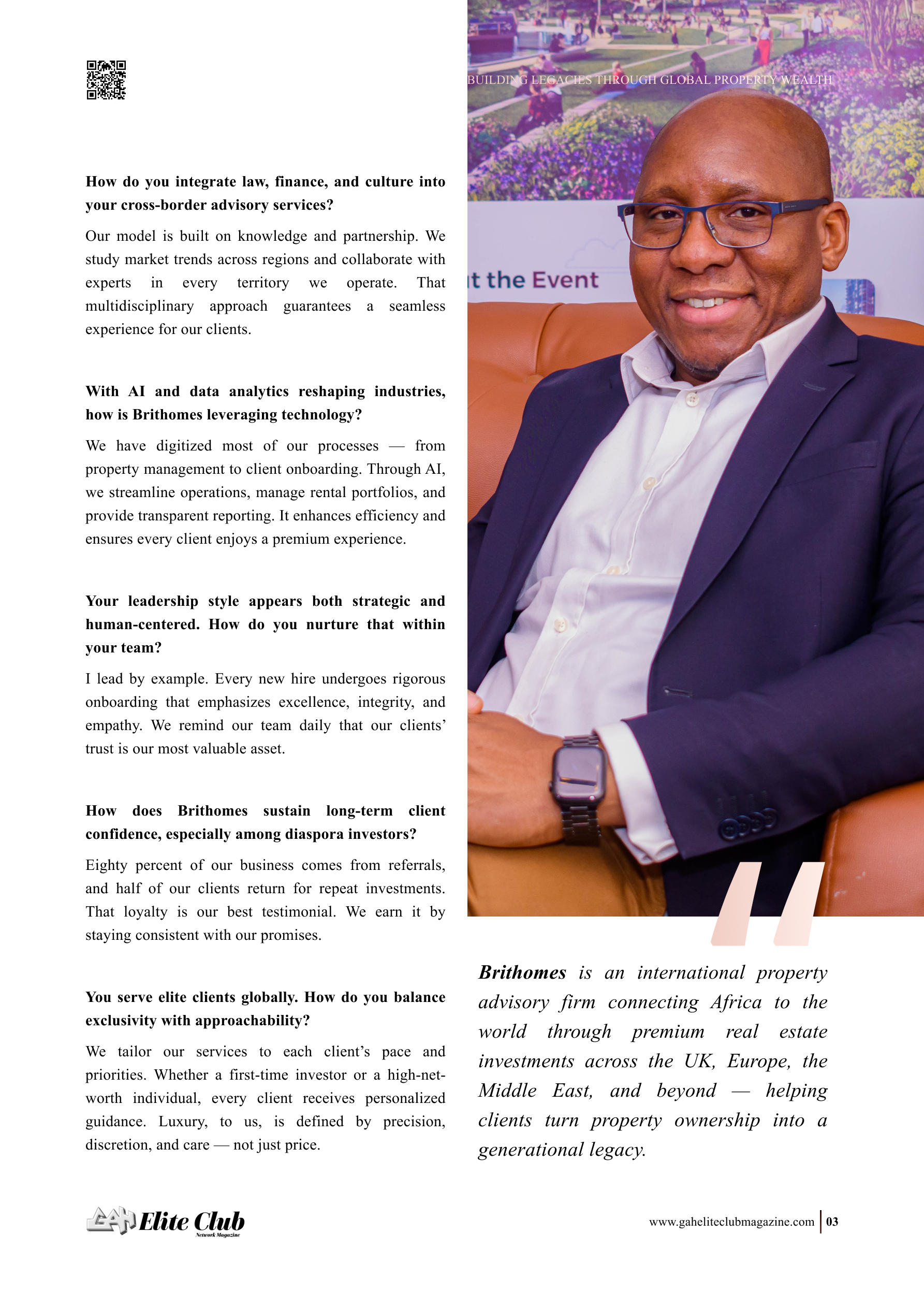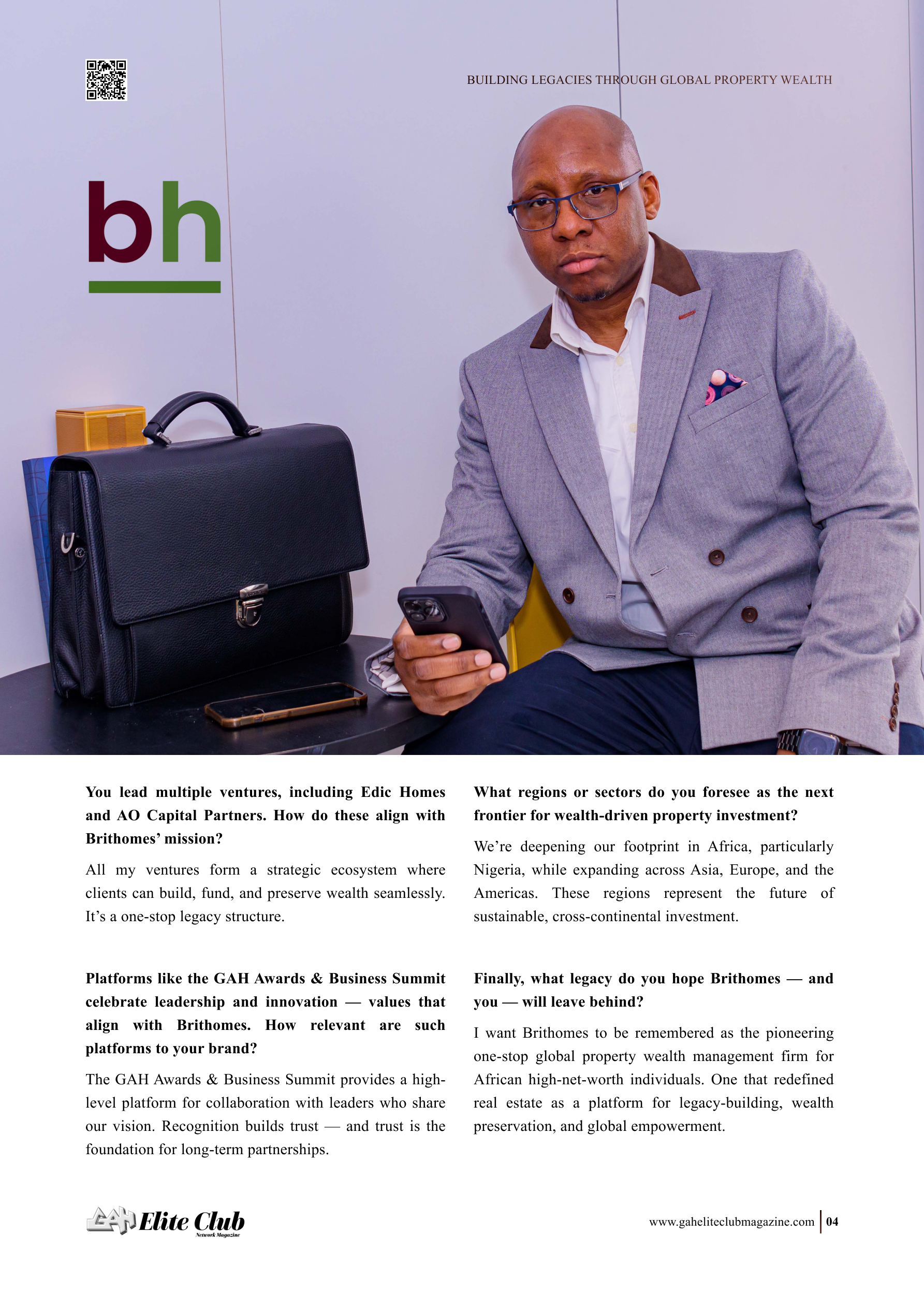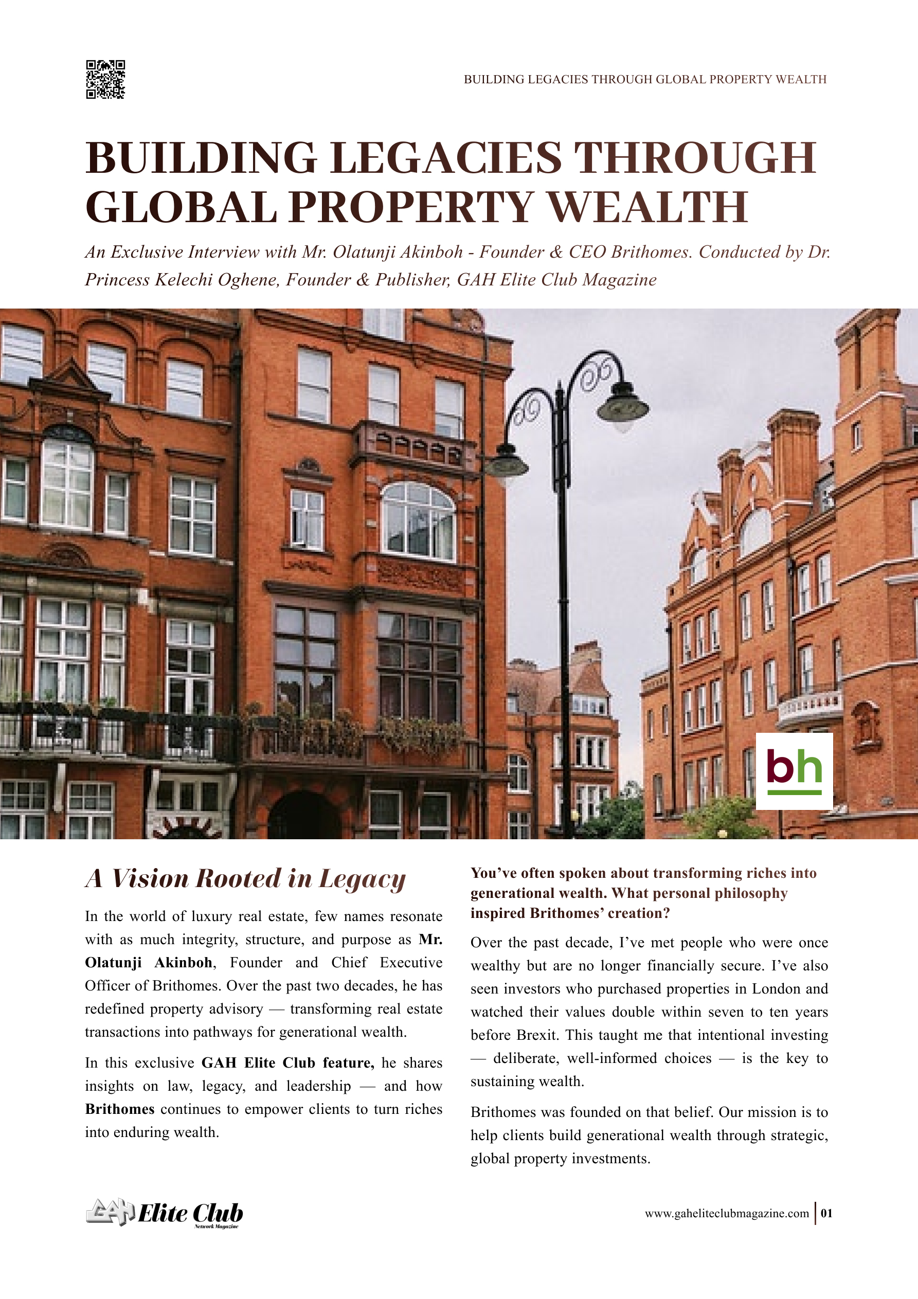 An Exclusive Interview with Mr. Olatunji Akinboh – Founder & CEO Brithomes. Conducted by Dr. Princess Kelechi Oghene, Founder & Publisher, GAH Elite Club Magazine